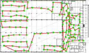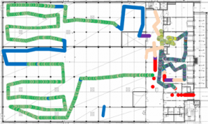 Die notwendigen Daten und Parameter werden anhand der Gebäudepläne aufgezeichnet und anschließend über die Gebäudepläne „gelegt“ und somit eine visualisierte Dokumentation erstellt (siehe Beispiel unten).